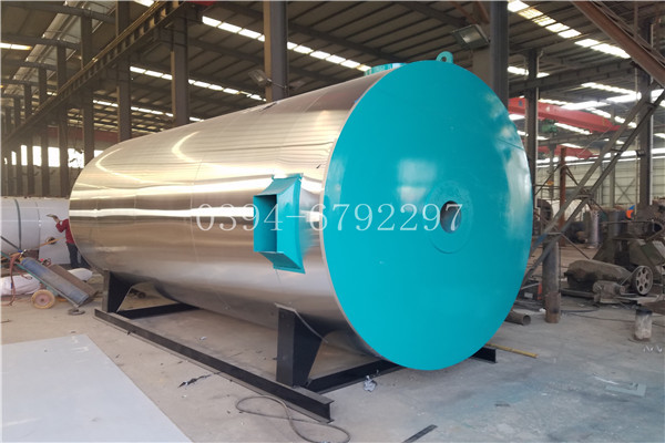 WNS系列蒸汽锅炉是锅壳式、波形炉胆、螺纹烟管型节能锅炉,采用三回程湿背式结构,燃料在炉胆内燃烧产生高温烟气,经回燃室→对流管束→前烟箱→第二对流管束→后烟箱→常压冷凝器→烟囱排入大气。炉胆在设计中采用波形炉胆,能较好的与火焰形状相适应,保证了燃烧充分,波形炉胆降低了炉胆刚性,减小了变形应力,可保证制造质量。同时在回燃室安装了检查孔或弹簧式防爆检查门,本体上设置的人孔有利于锅炉的安全运行及维修。锅炉安全控制严格按照NB/T47034-2013《工业锅炉技术条件》和有关规程规定执行。