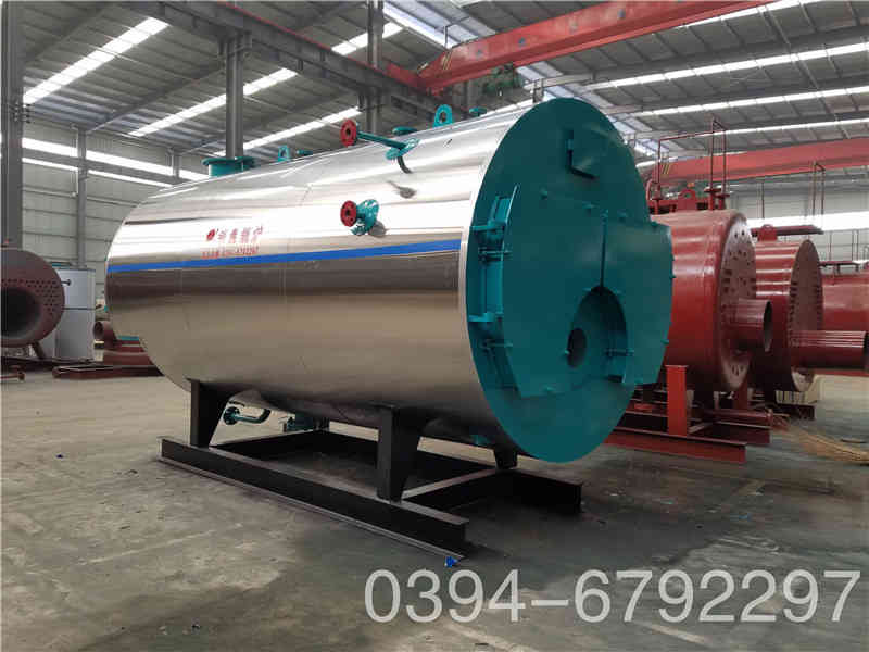 WNS系列蒸汽锅炉是锅壳式、波形炉胆、螺纹烟管型节能锅炉,采用三回程湿背式结构,燃料在炉胆内燃烧产生高温烟气,经回燃室→对流管束→前烟箱→第二对流管束→后烟箱→常压冷凝器→烟囱排入大气。炉胆在设计中采用波形炉胆,能较好的与火焰形状相适应,保证了燃烧充分,波形炉胆降低了炉胆刚性,减小了变形应力,可保证制造质量。同时在回燃室安装了检查孔或弹簧式防爆检查门,本体上设置的人孔有利于锅炉的安全运行及维修。锅炉安全控制严格按照NB/T47034-2013《工业锅炉技术条件》和有关规程规定执行。