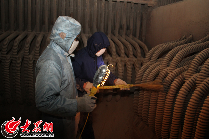 大众网济南4月7日讯(记者 宋立鹏)济南2015-2016年度供暖季已经结束了半个多月,停暖后热企工作人员都在忙些什么呢?他们的工作是不是一些人心目中忙半年、闲半年的美差呢?今天,大众网记者带着这些疑问,走进了济南热力有限公司莲花山热源厂,并亲身走进锅炉内部,体验了一把“锅炉清灰人”的工作。