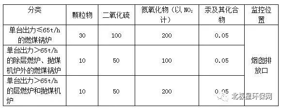 陕北、陕南地区燃煤锅炉大气污染物排放浓度限值